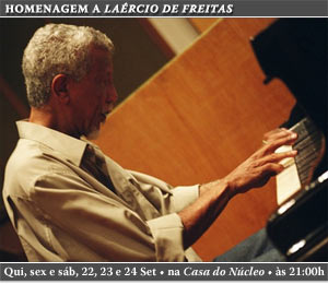 Lea Freire tem sido reconhecida por realizar o quê de melhor a música instrumental brasileiras pode produzir. Pianista, flautista e compositora, tem construído uma trajetória marcada por importantes parcerias, desde Guilherme Vergueiro, nos anos 80, aos nossos dias, com o Quinteto Vento em Madeira, na companhia dos músicos Teco Cardoso, Tiago Gosta, Fernando Demarco e Edu Ribeiro. Seu CD “Cartas Brasileiras” já é referência para a Música Brasileira e teve a regência do maestro Gil Jardim. Hamilton de Holanda tem estado em evidência desde 1995, quando foi o melhor intérprete no II Fesival de Choro do Rio de Janeiro. De lá para cá são muitos os prêmios, parcerias, viagens e CDs. Compositor habilidoso e instrumentista inigualável, no início de 2010, gravou sua Sinfonia Monumental, obra sinfônica dedicada à cidade de Brasília, por ocasião da celebração do aniversário de cinqüenta anos dessa capital. O CD teve a regência de Gil Jardim e a participação de músicos de seu Quinteto, Gabriel Grossi, Daniel Santiago, André Vasconcellos e Márcio Bahia. Convidada Especial - parte II - Léa Freire (flauta e orquestração). Auditório do Ibirapuera www.auditorioibirapuera.com.br Como chegar: siga a Av. Pedro Álvares Cabral, sentido bairro. Entre pelo Portão 3 (pouco antes da passarela do Detran). Passe pela Bienal, siga sentido OCA. Você chegou ao Auditório Ibirapuera, no Portão2 Ingressos: R$ 30,00 e R$ 15,00 (meia-entrada). Classificação: Livre para todos os públicos. Convite Virtual 22, 23 e 24/09. Qui, sex e sáb às 21:00h - "Homenagem a Laércio de Freitas" na Casa do Núcleo
